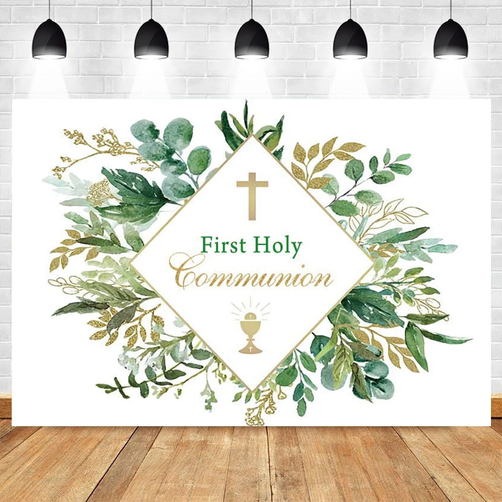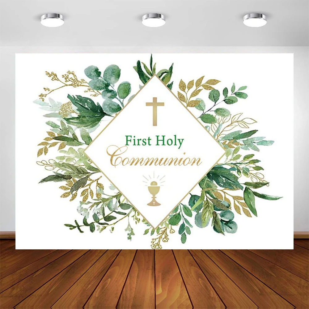 Виниловый фон для фотосъемки с изображением листьев и Креста на Первое Святое Причастие