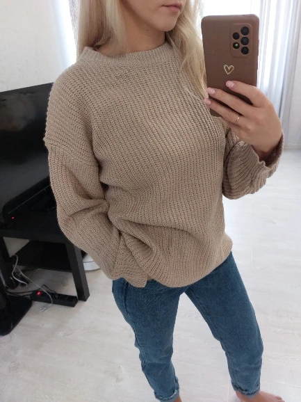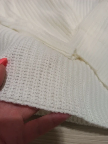 без затяжек, неприятного запаха не было. Покупала когда-то свитер с такими же фотографиями у другого продавца - тот был более плотным. На рост 165 по рукавам нормально, но рост 170 - коротковато. Взяла сразу два цвета. белый просвечивает из-за неплотной вязки