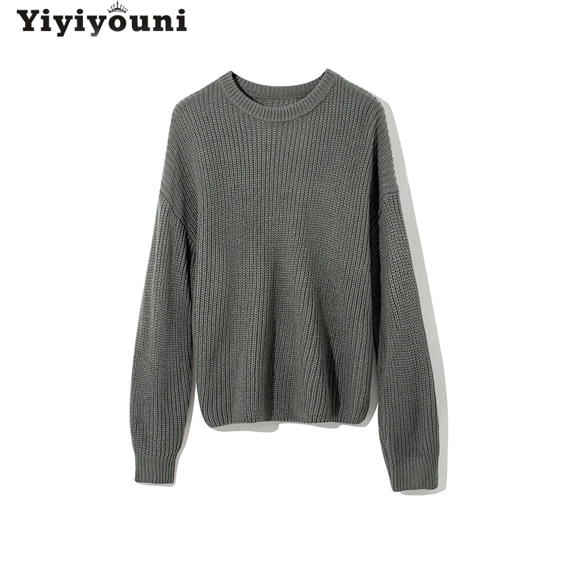 Осенне-зимний вязаный свитер Yiyiyouni большого размера, женские толстые повседневные свободные пуловеры, Женские однотонные кашемировые Джемперы 2021