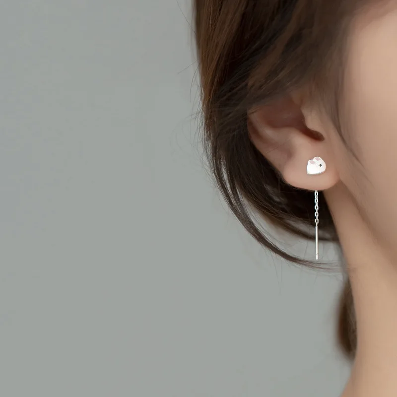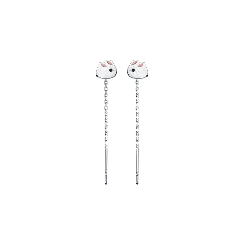 INZATT реальные 925 стерлингового серебра эмалью с изображением животного цепочка с кроликом кольцо с кисточкой серьги для модные женские туфли милые ювелирные украшения Аксессуары