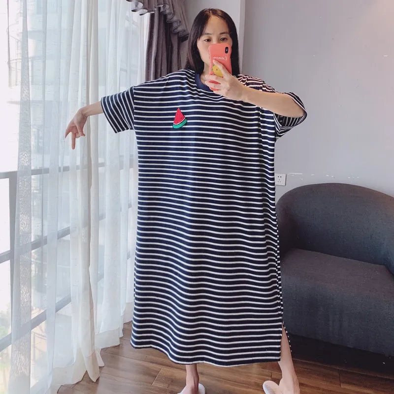 Ночная рубашка женская, хлопок, с коротким рукавом, размера плюс, ночная рубашка в полоску, 5XL, 2021