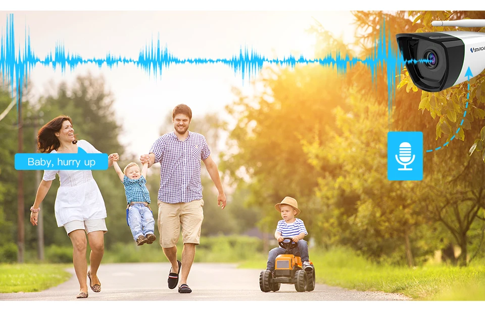 В камеру встроен большой микрофон 38 дБ, он может четко передавать звук удаленно, проверять более четкое видео с помощью синхронизированного звука в любое время и в любом месте.
