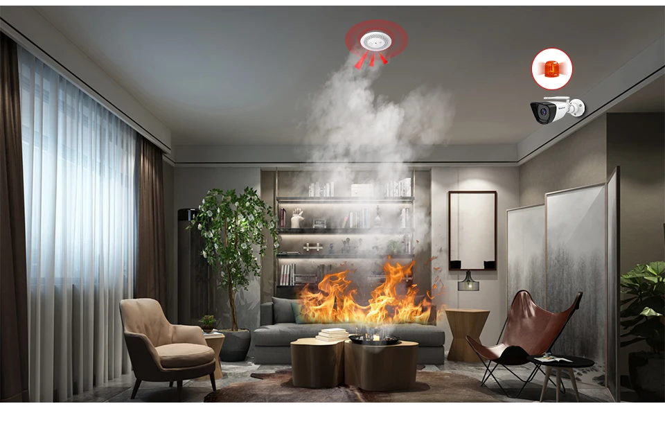 Когда камера обнаруживает тревожный звук детектора курения, она уведомляет вас по сообщениям и электронной почте, вы можете удаленно смотреть видео в реальном времени и проверить ситуацию с курением.