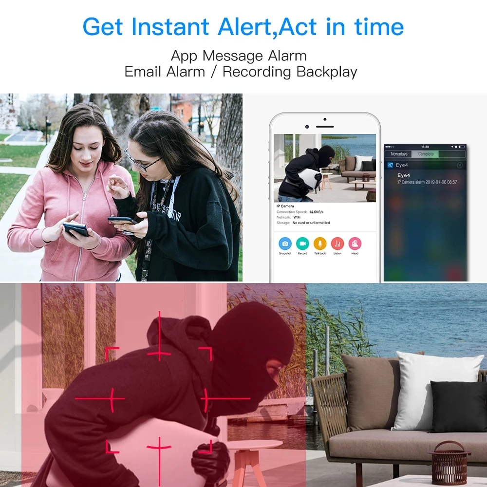 √ Встроенная модернизированная технология AI, камера не только поддерживает обнаружение движения, но и поддерживает более умное Обнаружение гуманоидов AI.