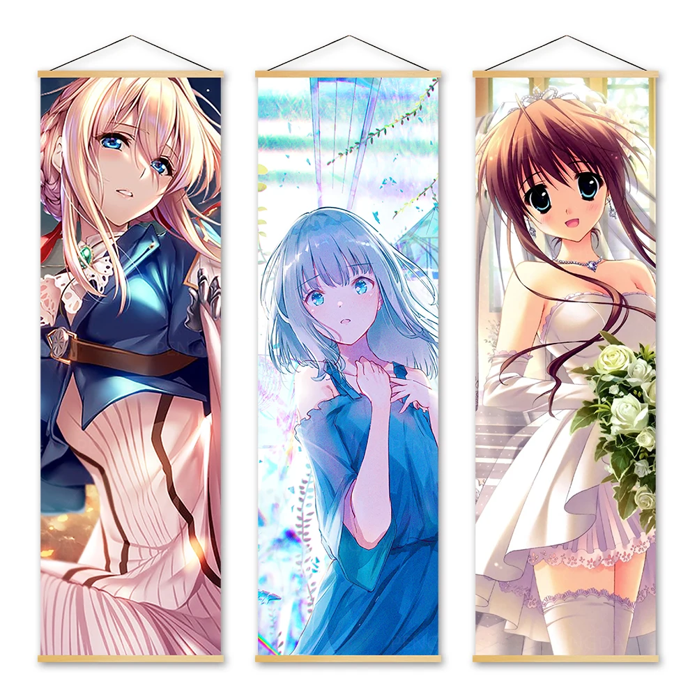 Настенный постер с изображением фиолетового вечносада, настенное украшение для дома, японское аниме ролевая картина, деревянный свиток, подвесная картина
