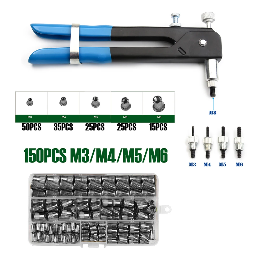 100/150/165/210 шт M3-M12 алюминиевый мульти с плоской головкой метрической резьбы вытяжная Заклепка гайка вставки Rivnut Nutsert винтПосылка включает в себя:1x100 шт заклепки гайки с коробкой (M3,M4, M5, M6, M8)М3: 30 шт.M4:30 шт.M5:20 шт.M6:10 шт.M8:10 шт.Посылка включает в себя:1x150 шт заклепки гайки с коробкой (M3,M4, M5, M6, M8, M10)М3: 50 шт.M4:35 шт.M5:25 шт.M6:25 шт.M8:15 шт.Посылка включает в себя:1x165 шт заклепки гайки с коробкой (M3,M4, M5, M6, M8, M10, M12)М3: 65 штM4:40 шт.M5:30 шт.M6:20 шт.M8:10 шт.Посылка включает в себя:1x210 шт заклепки гайки с коробкой (M4/M5/M6/M8/M10/M12)М3: 85 шт.M4:55 шт.M5:40 шт.M6:20 шт.M8:10 шт.