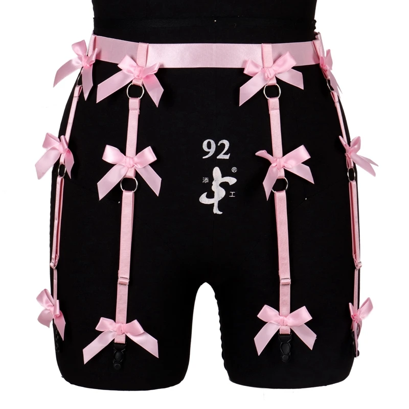Женский бюстгальтер с заклепками, розовый бант на поясе, сексуально...