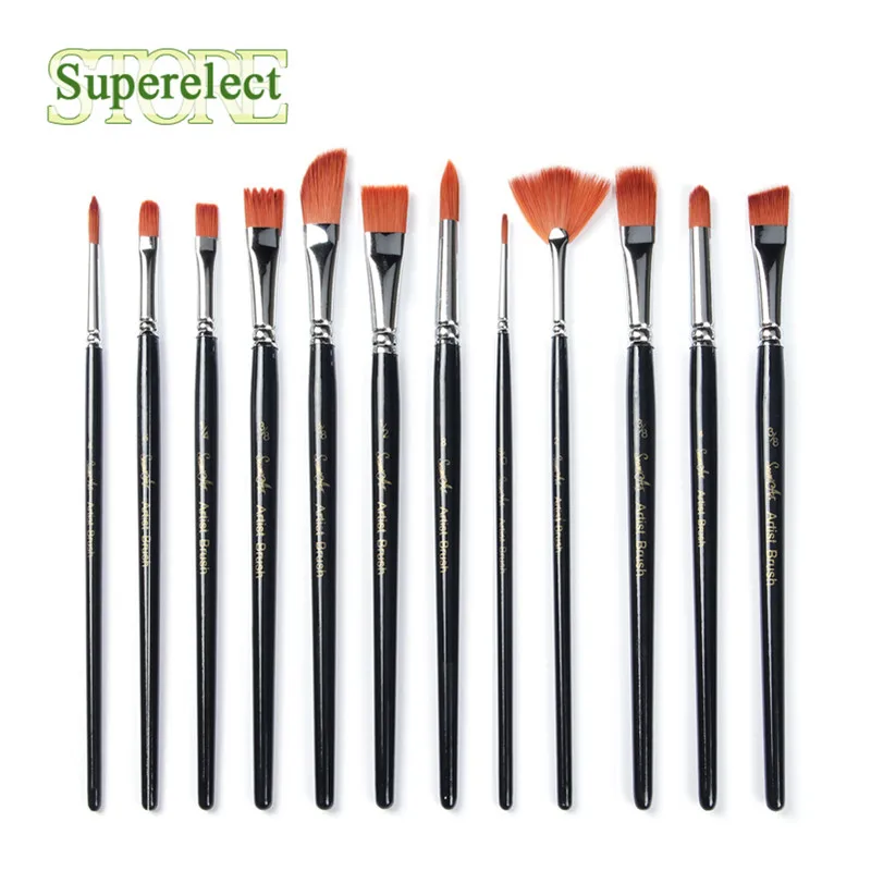 12 штпартия, разные Форма деревянный набор нейлоновых волосяных воды Цвет Краски Кисти Набор для начинающих воды Цвет акриловые кисти для живописи маслом Краски ing кисти расходные материалы