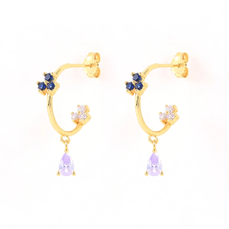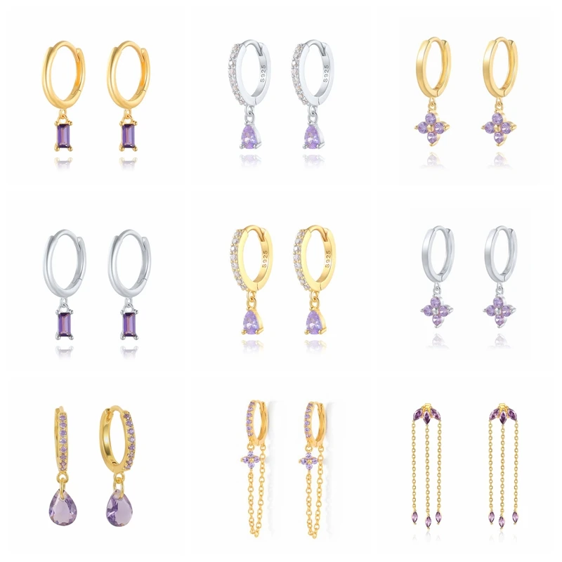 Серебро 925 пробы, фиолетовый Хрустальный цветок, очаровательные серьги-кольца для женщин, тренд 2021, Роскошный кулон в виде капли воды, ювелирные изделия