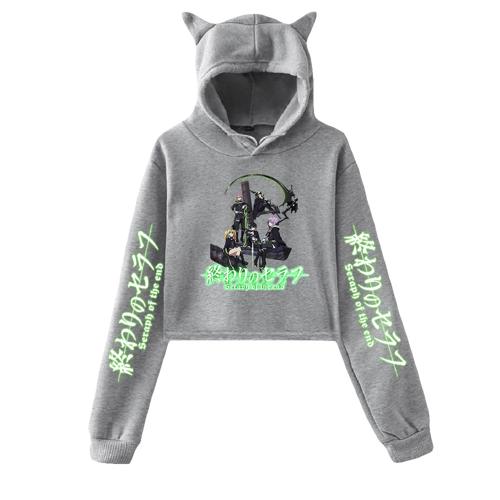 Толстовка с капюшоном и принтом кошки, укороченная толстовка, Женск...