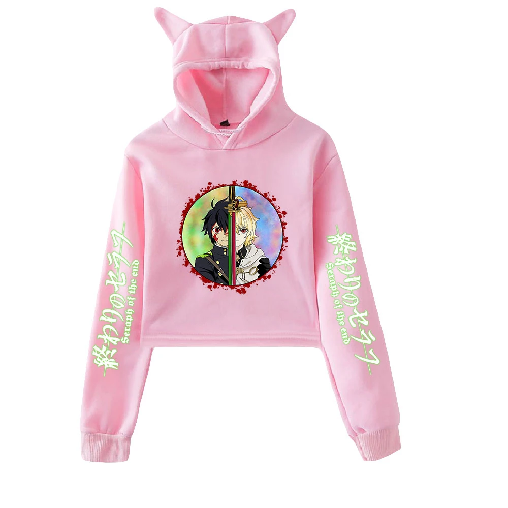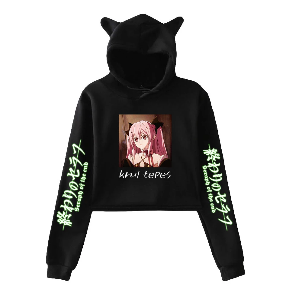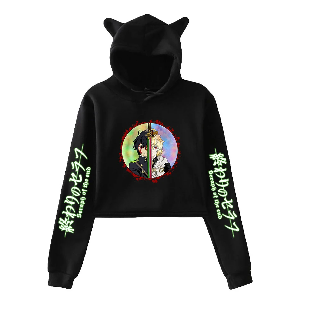 Женский короткий топ с капюшоном и принтом в виде кошки