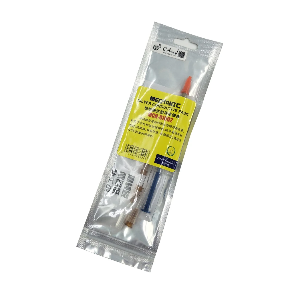 Механик 0,2 0,3 0,4 0,5 0,7 1,0 мл 100% Серебряный проводящий клей паяльная паста клейкая краска печатная плата ремонт печатной платы сварка Особенности:Вы покупаете Серебряный проводящий клей/пасту для ремонта электроники.Это легко использовать. Просто подключи и работай.Отлично подходит для ремонта следов дефектов/следов или создания гладких перемычек на печатной плате.Может использоваться для ремонта мембранных переключателей.Идеально подходит как для жестких, так и для гибких подложек.Он широко используется в домашних поставках, (например, холодильник, Питьевая машина, электромагнитная печь и электронные Чайники и т. д.) электрические элементы (например, мощность, изобретатель, реле и SCR и т. д.) ЦП в компьютере, светодиодный дисплей, ЖК-дисплей, оптическое оптоволоконное коммуникационное оборудование, контроллер, Теплоотвод и светодиод и т. Д. Плазменный телевизор EMI фильтр стекло, пленка EMI, ITO, LED, rfid-антенна, общий мембранный переключатель мягкой цепи, компьютерная клавиатура цепи, экранирование цепи, нагревательная цепь, ремонт цепи и т. Д. Инструкции по использованию:1. Нанесите Серебряный клей/пасту в нужное вам место.2. После того, как желаемые треки будут покрыты, пожалуйста, дайте один час для сушки.3. Если вы хотите быстро высыхать, проденьте его с помощью фена в течение 5 - 10 минут будет в порядке.
