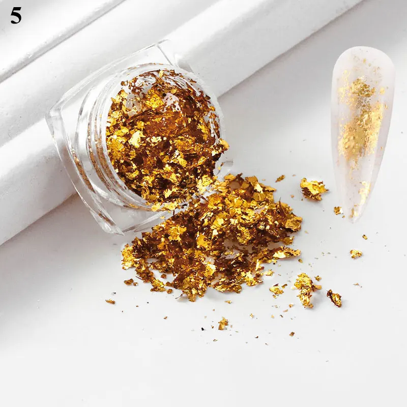 Наклейки для ногтей, Золотая фольга, золотые блестки, хлопья, нерегулярная алюминиевая фольга, Блестки для ногтей, Хромовый порошок арт, наклейки для ногтей
