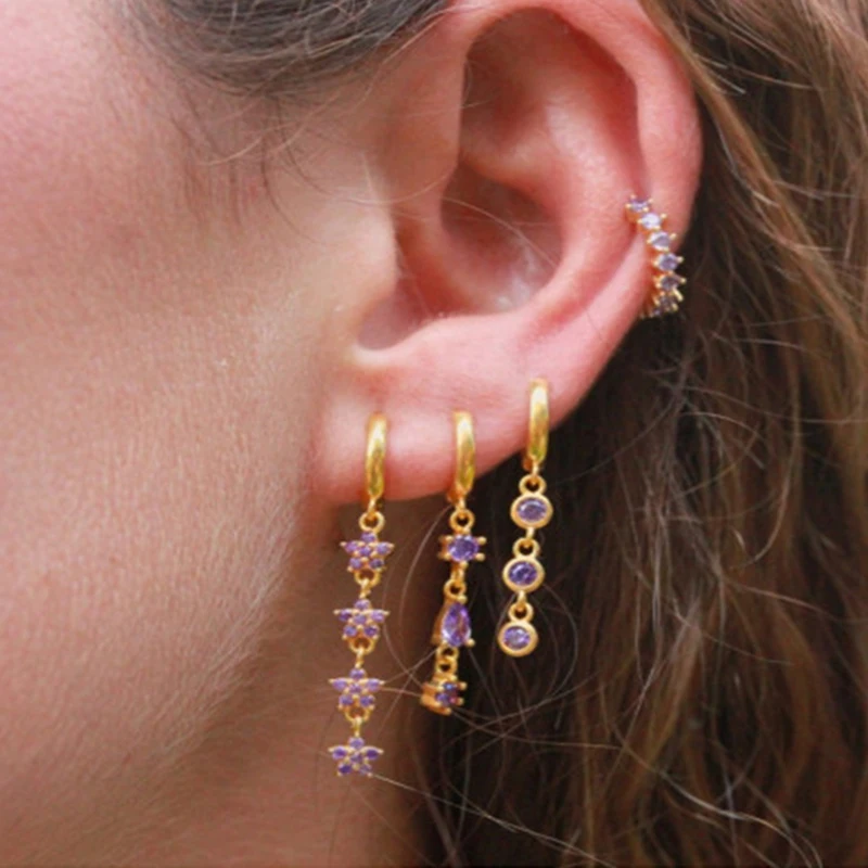 GS 925 пробы серебро Цвет: фиолетовый, розовый, белый Циркон CZ Tassel Pendant Роскошные Длинные серьги с украшением в виде кристаллов Шарм Круг висячие серьги