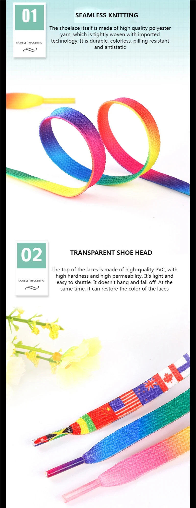 1 пара шнурков на плоской подошве радужного цвета, шнурки для обуви, повседневная парусиновая обувь, разноцветные шнурки с градиентным принтом, универсальные для мужчин и женщин