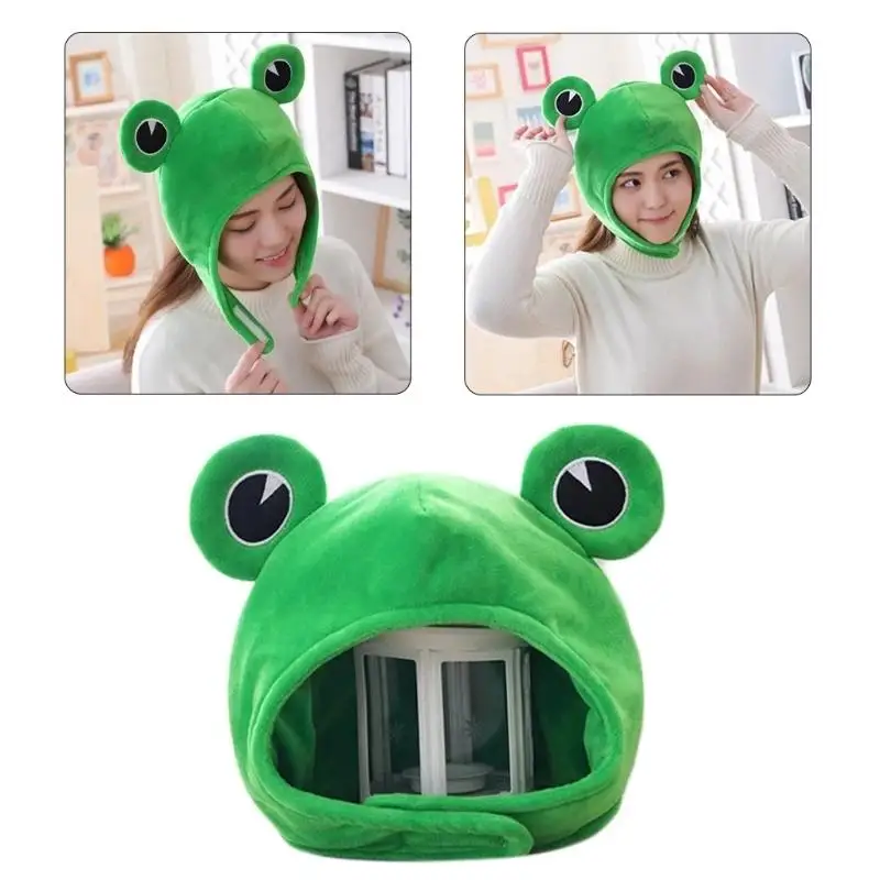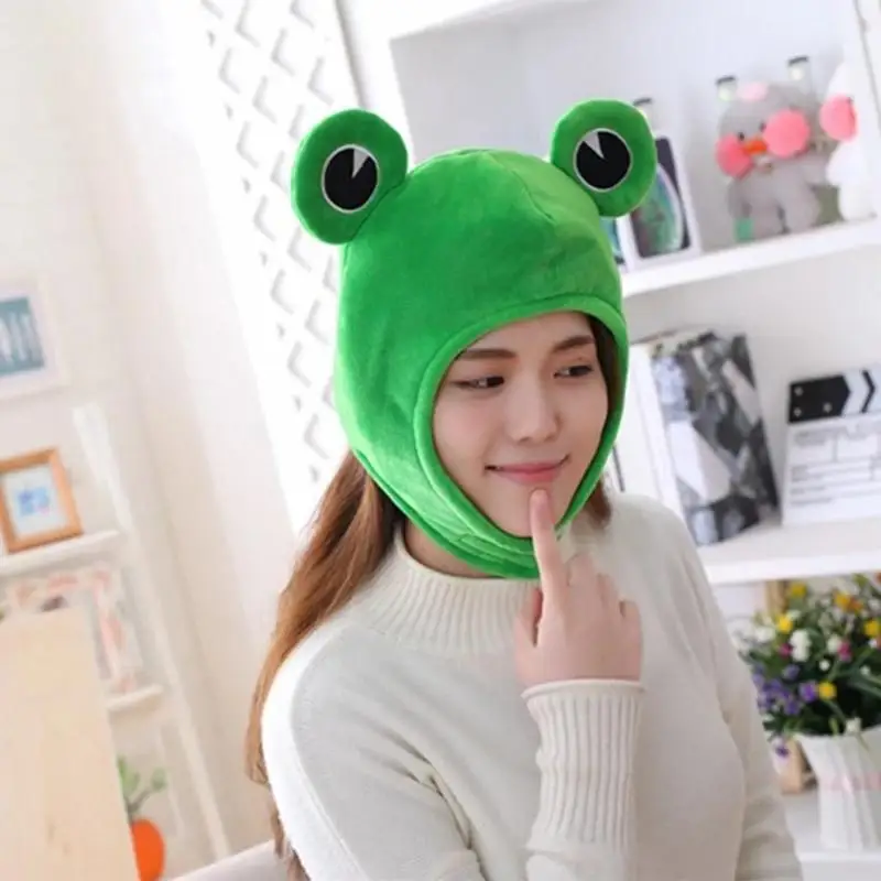 Новые забавные лягушка глаза плюшевые домашние тапочки с кошечкой из мультфильма шляпка Зеленый Головные уборы Кепки Косплэй шляпы для маскарадных костюмов фестиваль вечерние Наряжаться реквизит для фотосессии милые Кепки s