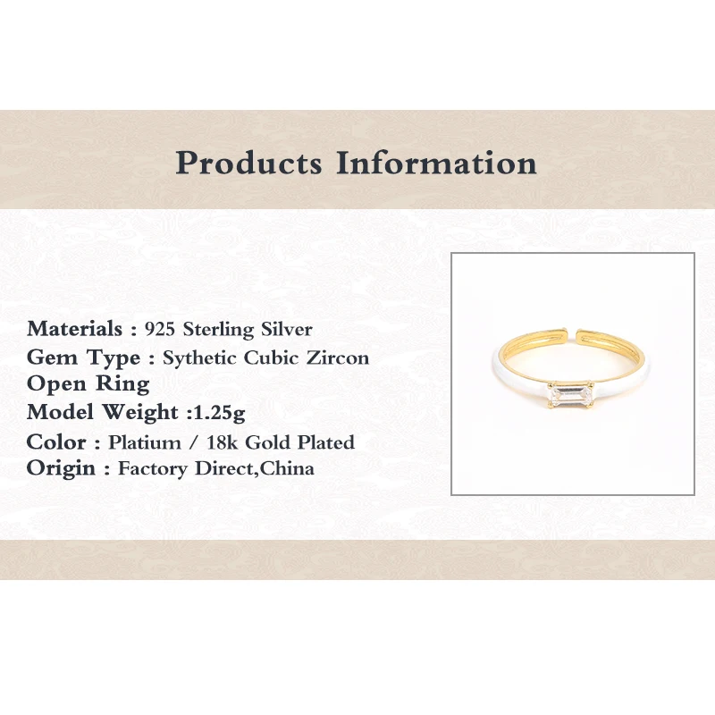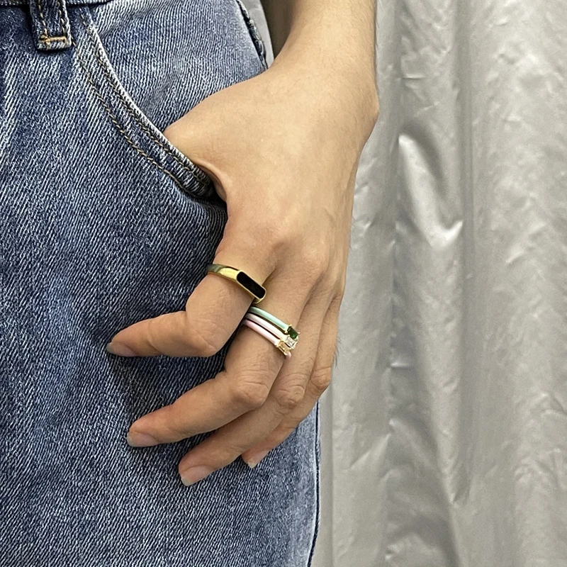 ROMAD 925 пробы серебро Цветной эмаль Регулируемые кольца с изменяемыми размерами капель масла квадратный Циркон Открытие Кольца для свадебной вечеринки драгоценный камень