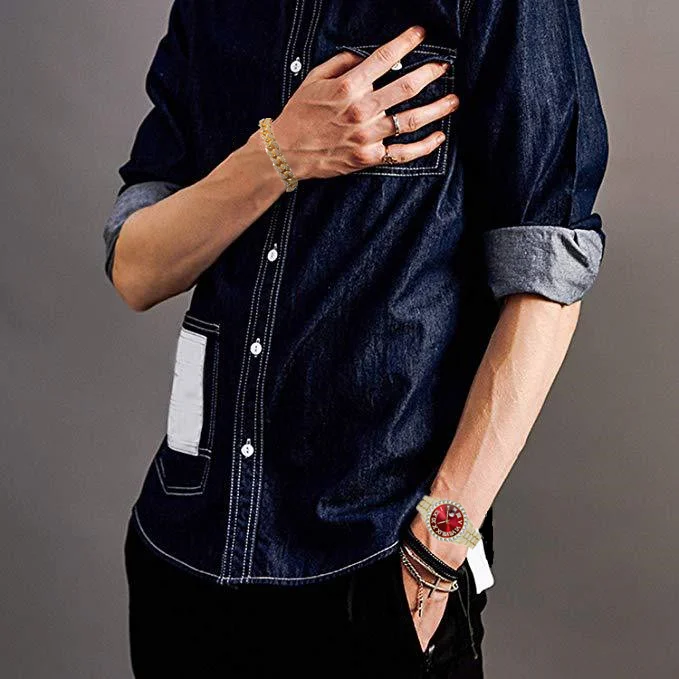Мужские часы с браслетом и цепочкой из кубинской цепи