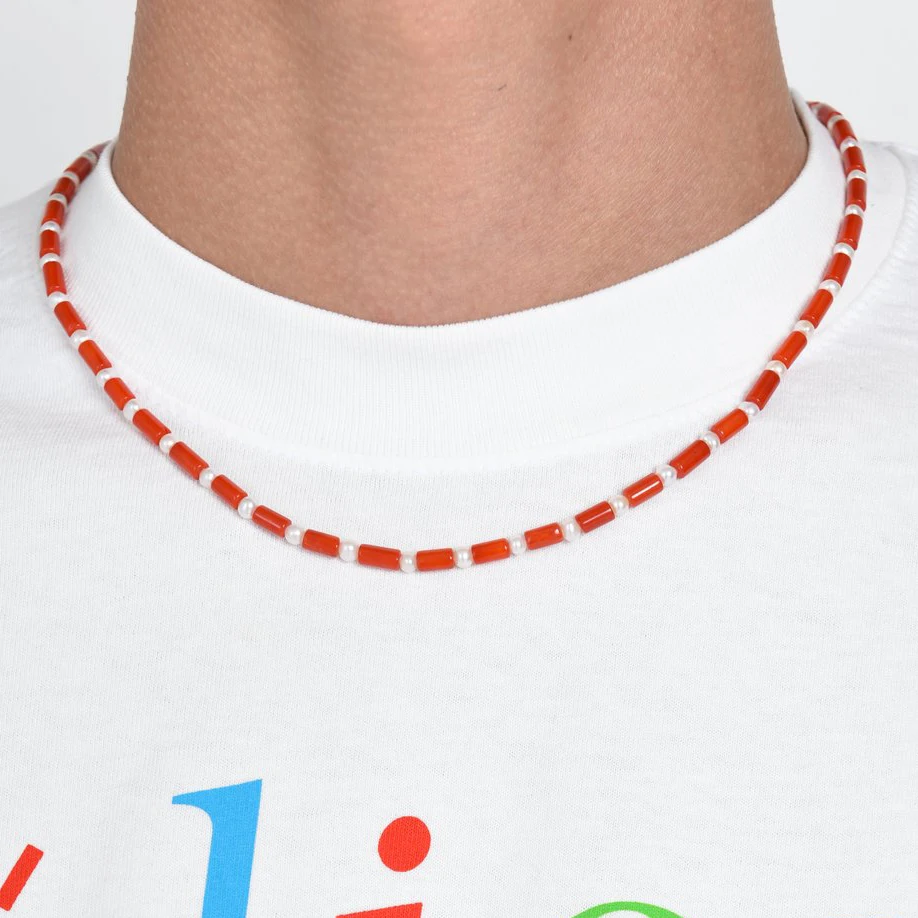 Женский модный подарок bizuteria, колье, аксессуары для одежды, красный коралловый бисер, женская изящная, украшенная бусинами, простое ожерелье, OL, ювелирные изделия, подарки