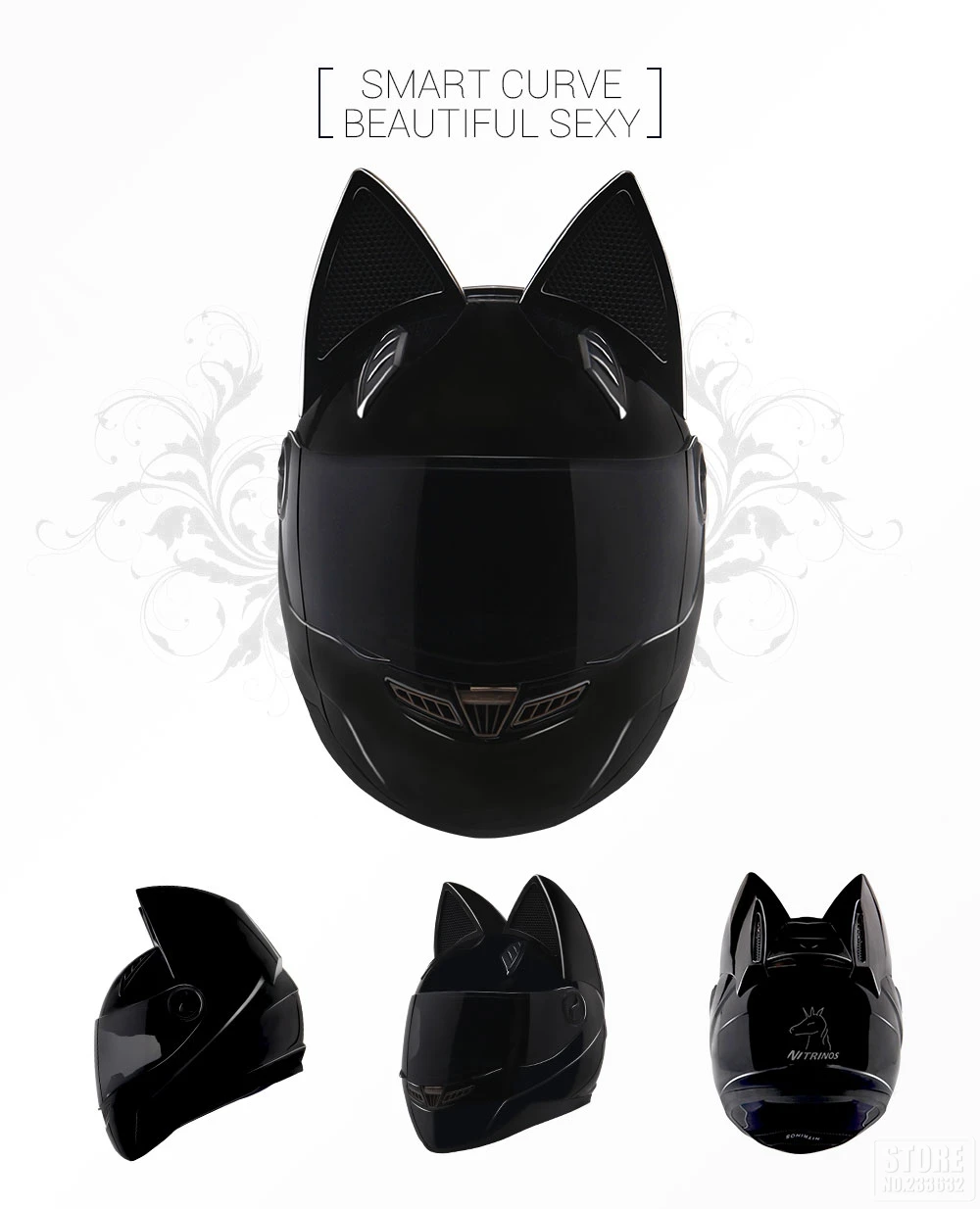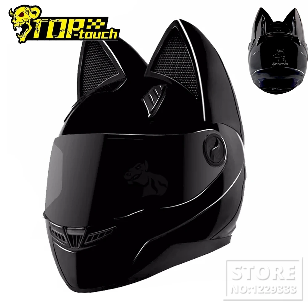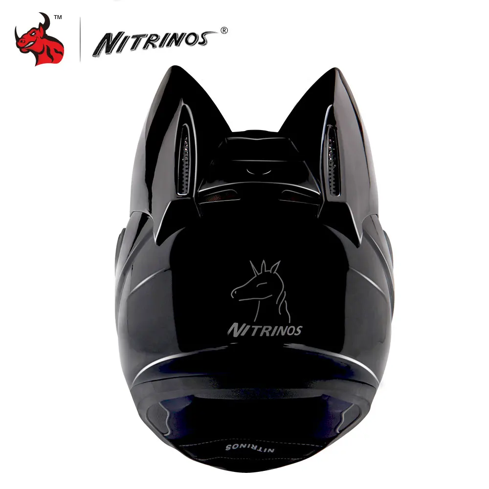 Женский мотоциклетный шлем NITRINOS, черный шлем с полным лицевым покрытием, модный мотоциклетный шлем
