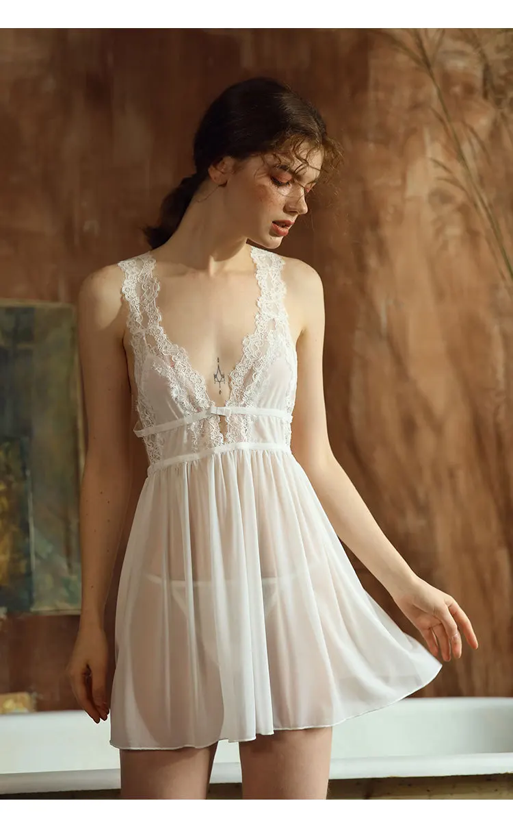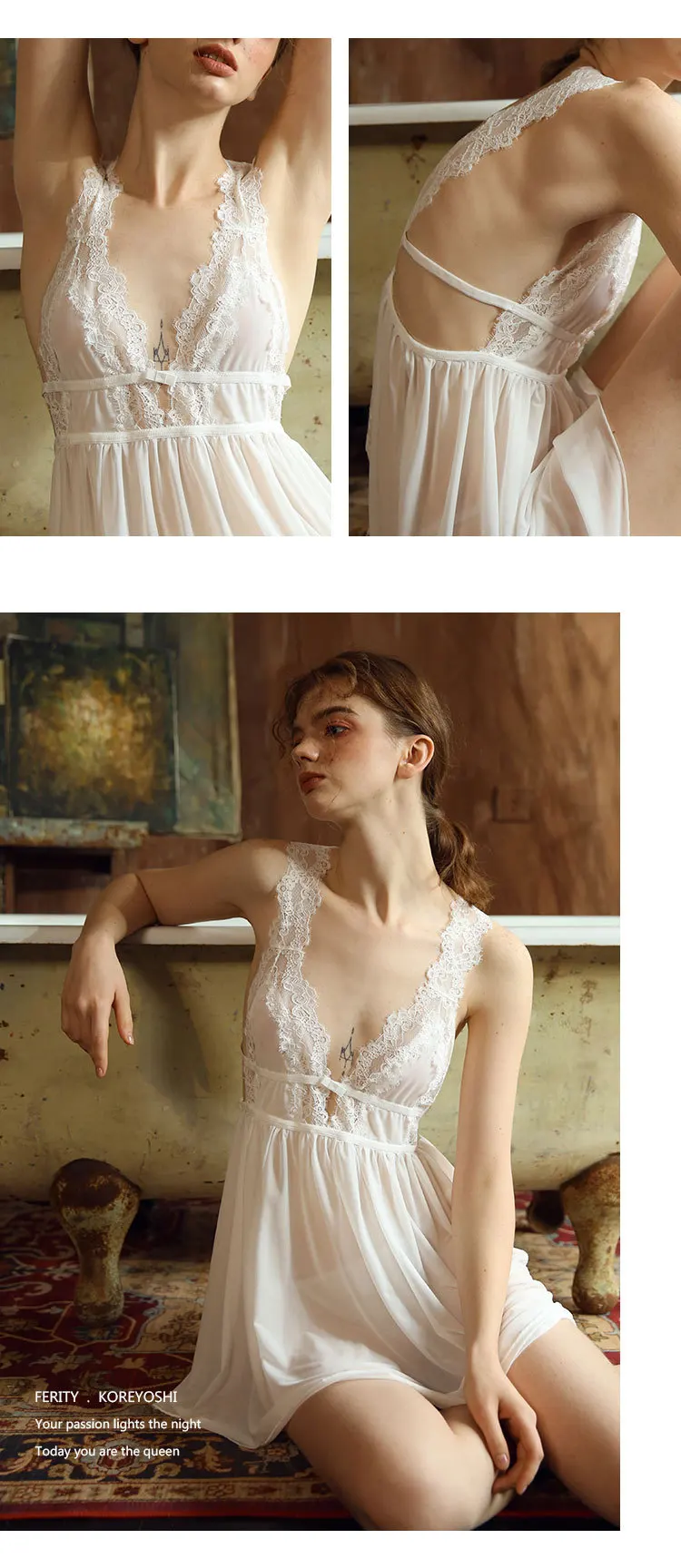 Ночная сорочка женская кружевная с V-образным вырезом, без рукавов,...