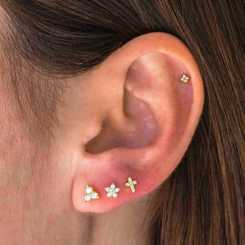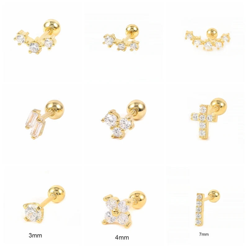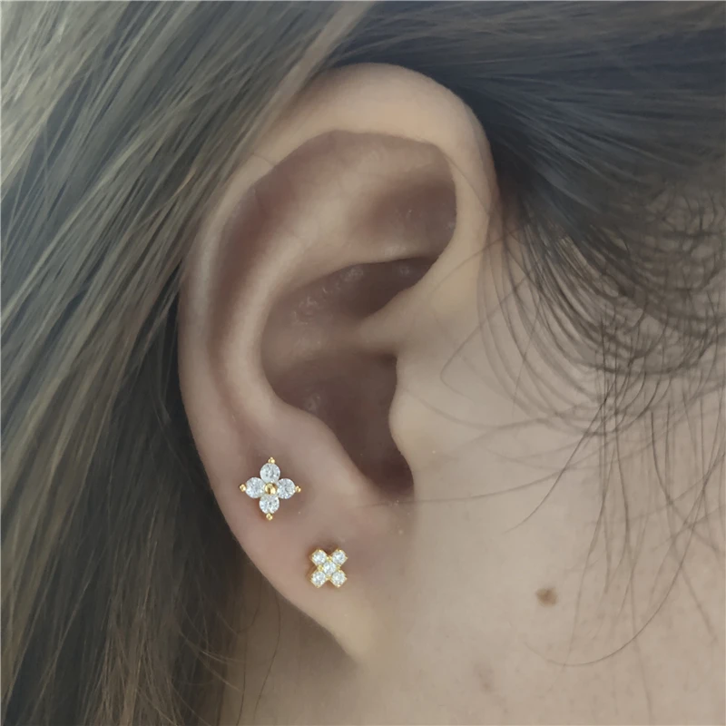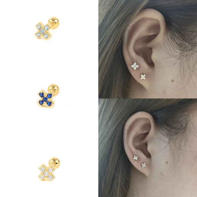 Женские серьги-гвоздики из серебра 925 пробы с мини-крестом
