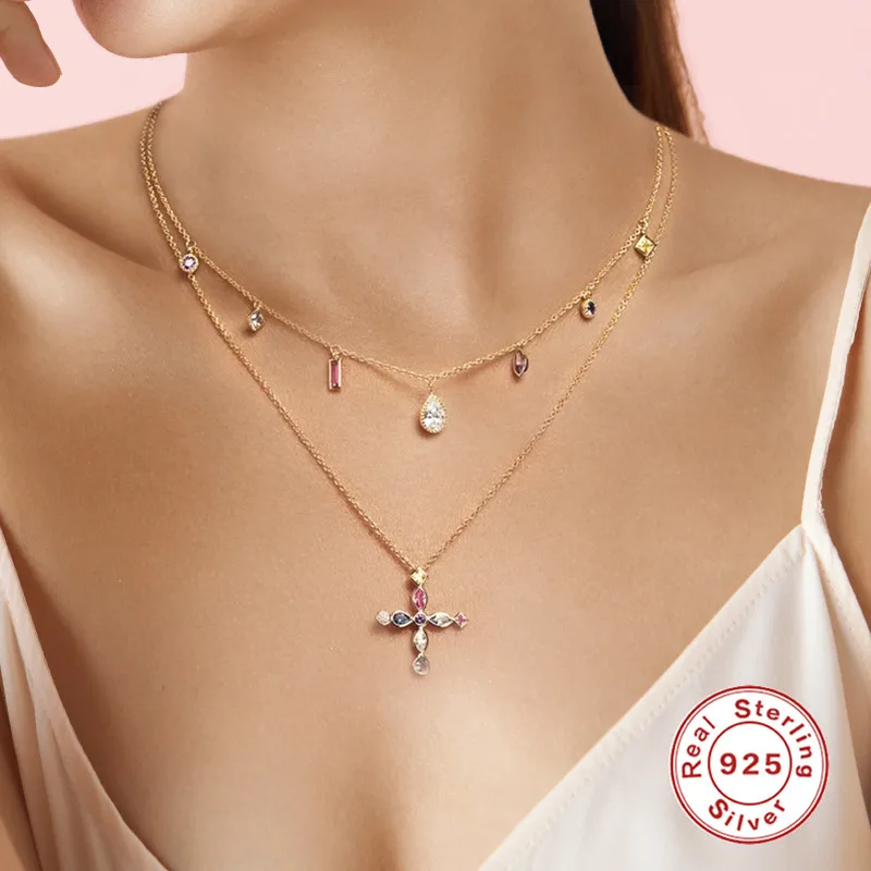 Цепочка женская из серебра 925 пробы, с крестом, ожерелье бижутерия