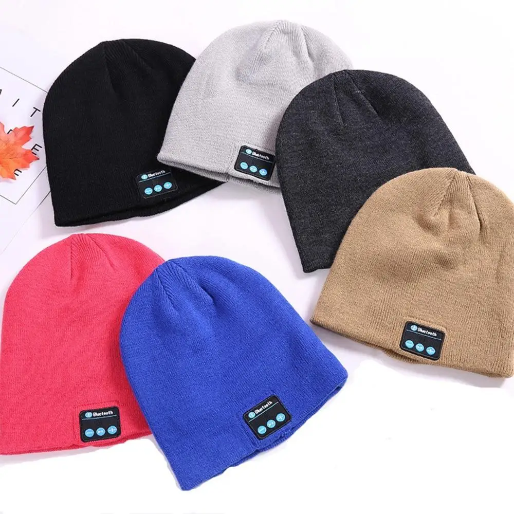 Теплая Шапка-бини Bluetooth 5,0 со светодиодный шапкой, Беспроводная стереогарнитура, музыкальный плеер с микрофоном, поддержка громкой связи, затемнение, перезаряжаемая, 1 шт.