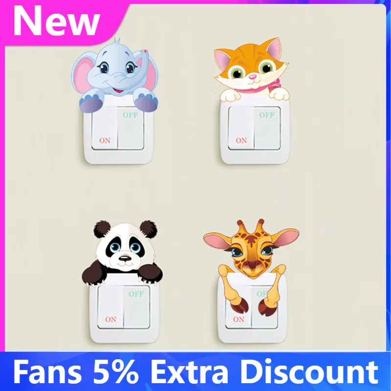 Новые милые животные, слон, кошка, панда, жираф, светильник, переключатель, наклейка, съемные наклейки на стену для детей, Детская домашняя наклейка