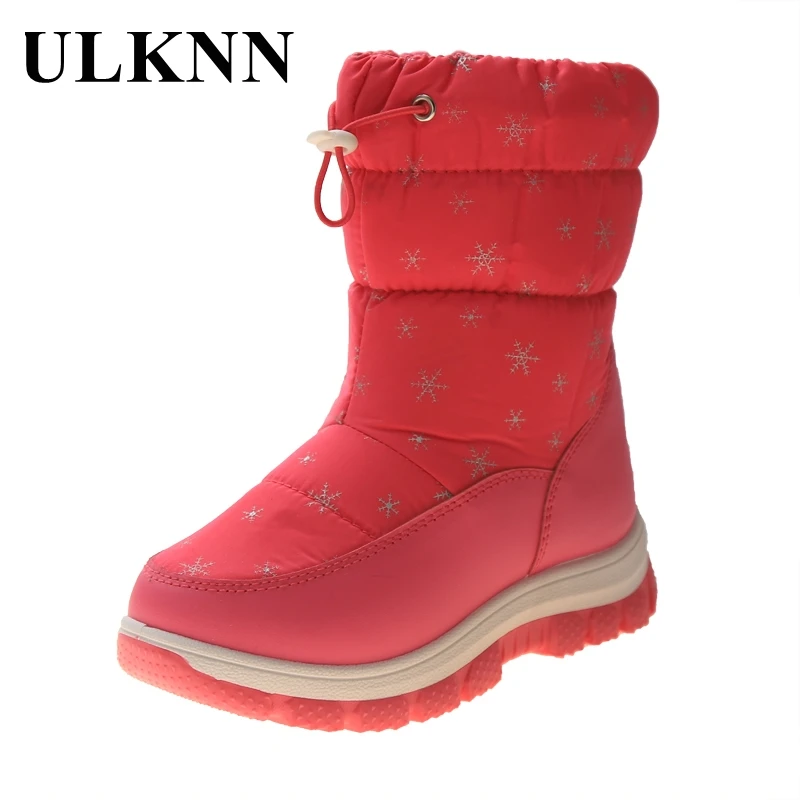 Зимние сапоги на платформе ULKNN для детей, Нескользящие высокие сапоги до середины икры с резиновой подошвой для девочек, 3 цвета, обувь для мальчиков с хлопковой подкладкой