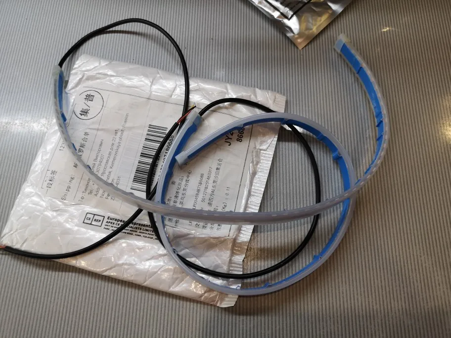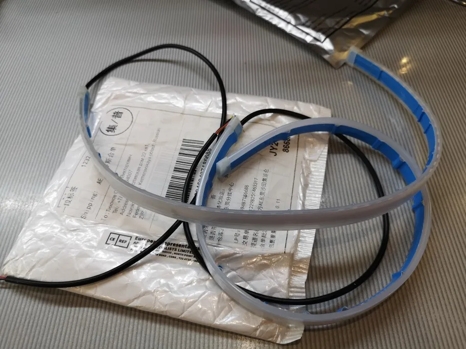 приехал заказ в Оренбург очень быстро, за 10 дней. задумка хорошая, а исполнение не очень, светодиодная лента светит в сторону, где наклеен двух сторонний скотч, из-за этого яркость слабая, чтобы светили нормально, надо вытаскивать ленту из корпуса и вставлять в другой прозрачный корпус и потом его клеить на фару. в общем без колхоза ходовые огни не получатся, максимум подсветка фары