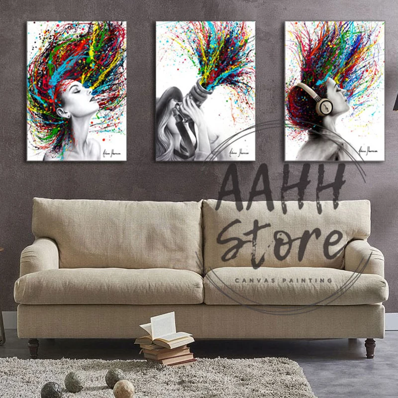Картина с изображением девушек в наушниках, абстрактное граффити, картина для украшения дома, художественный постер картина