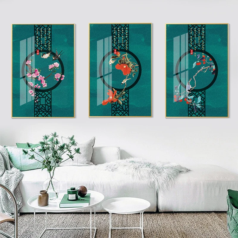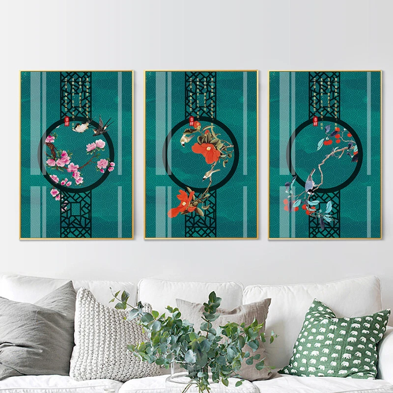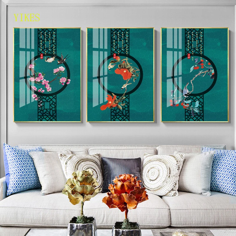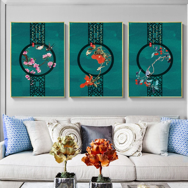 Настенная картина в китайском стиле с изображением красных цветов, настенная Картина на холсте, семейный комбинированный постер с рисунком, декоративная картина