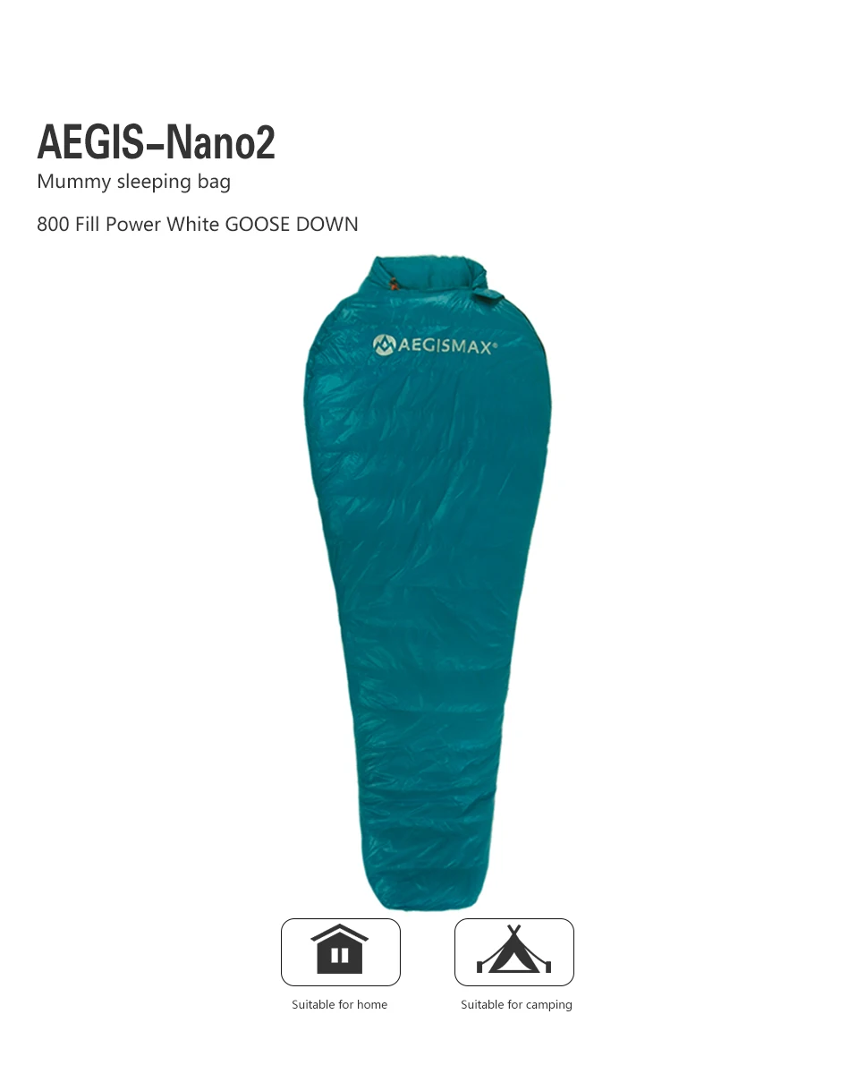 Спальный мешок AEGISMAX NANO 2 для взрослых, Ультралегкий пуховый Нейлоновый, трехсезонный, для кемпинга, уличный, Мумия, с гусиным пухом