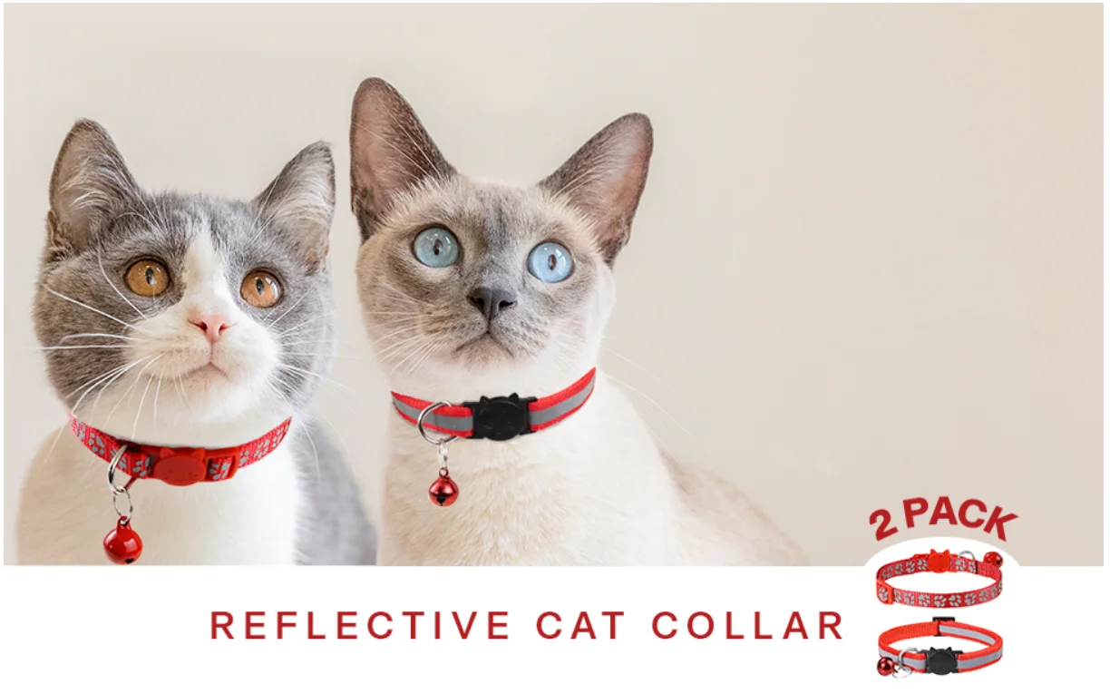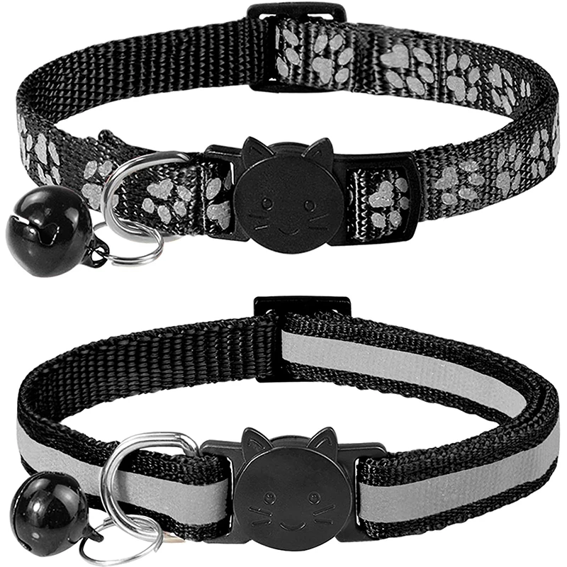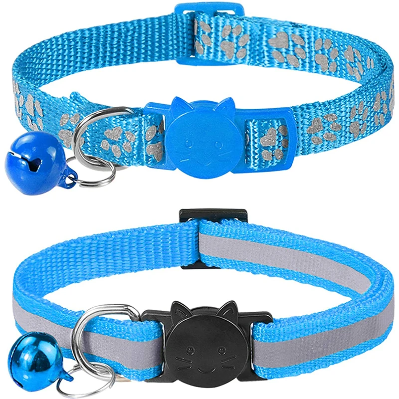 Новый Яркий светоотражающий воротник для кошек с колокольчиком, 2 шт., однотонные безопасные воротники для домашних животных, аксессуары для котят