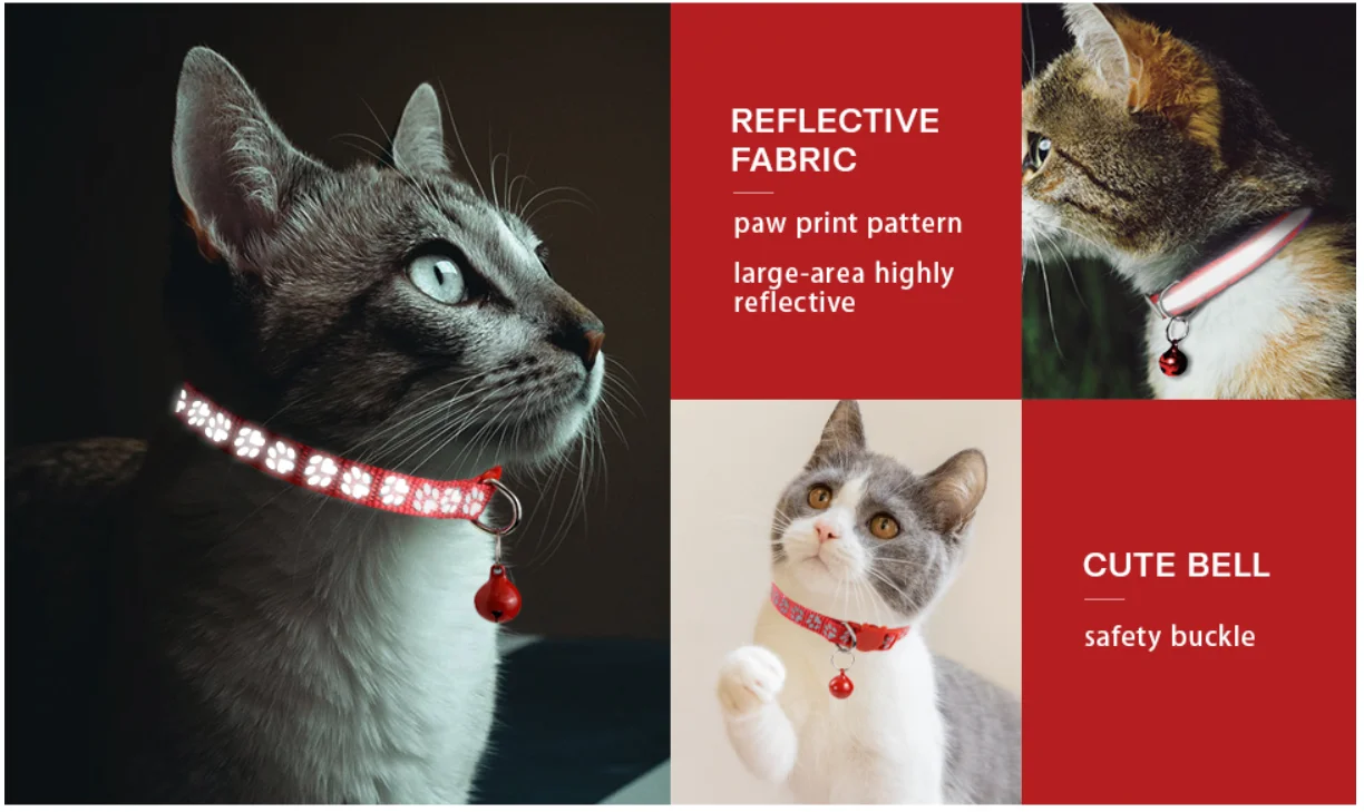 Ошейник-колокольчик для кошек, светоотражающий, регулируемый, мягки...