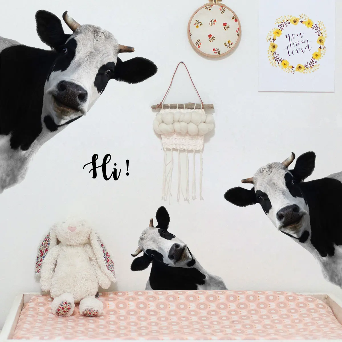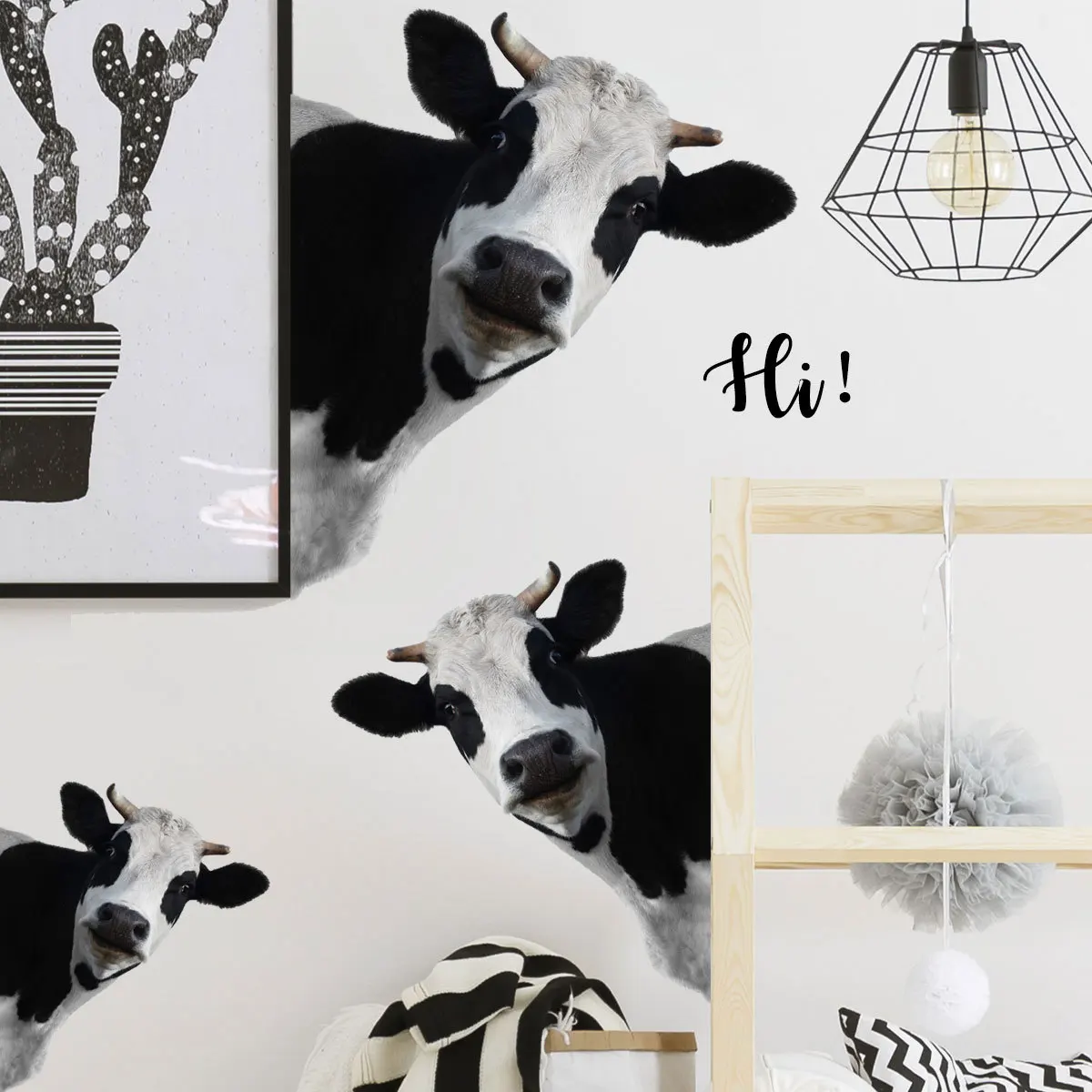 Милый Животные черные настенные наклейки и белая корова резинки самоклеящиеся настенные паста для детской комнаты, детский сад детские украшения стола