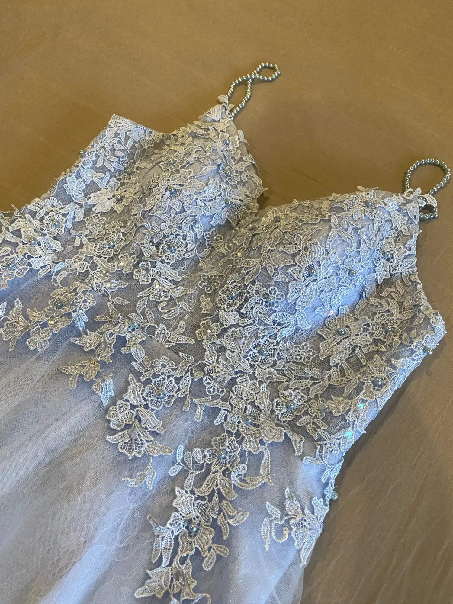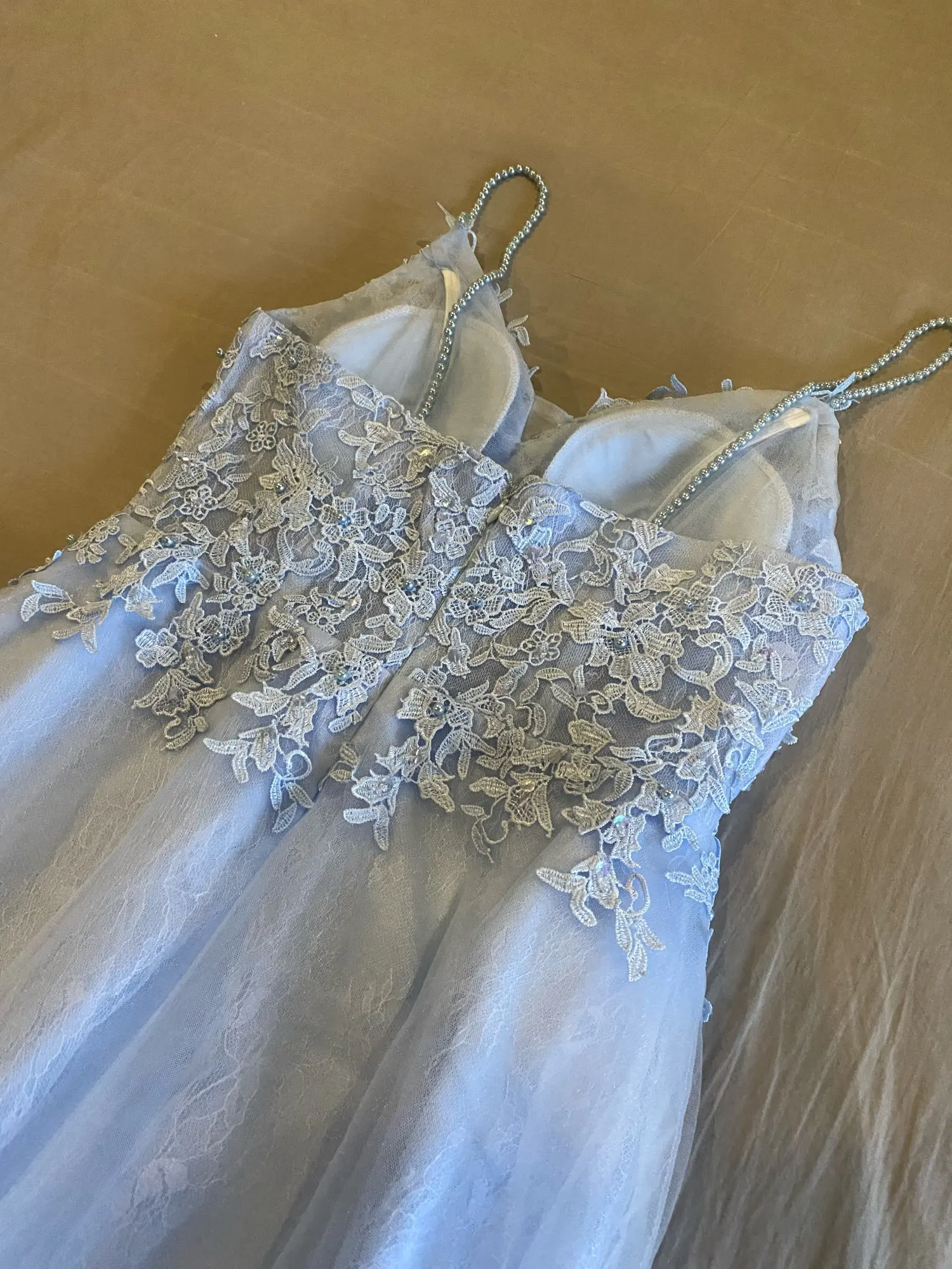 Тюлевое вечернее платье на бретельках, с кружевной аппликацией, вышивкой бисером, платье с разрезом для выпускного вечера, светло-голубого цвета, трапециевидной формы, с открытой спиной, 2021