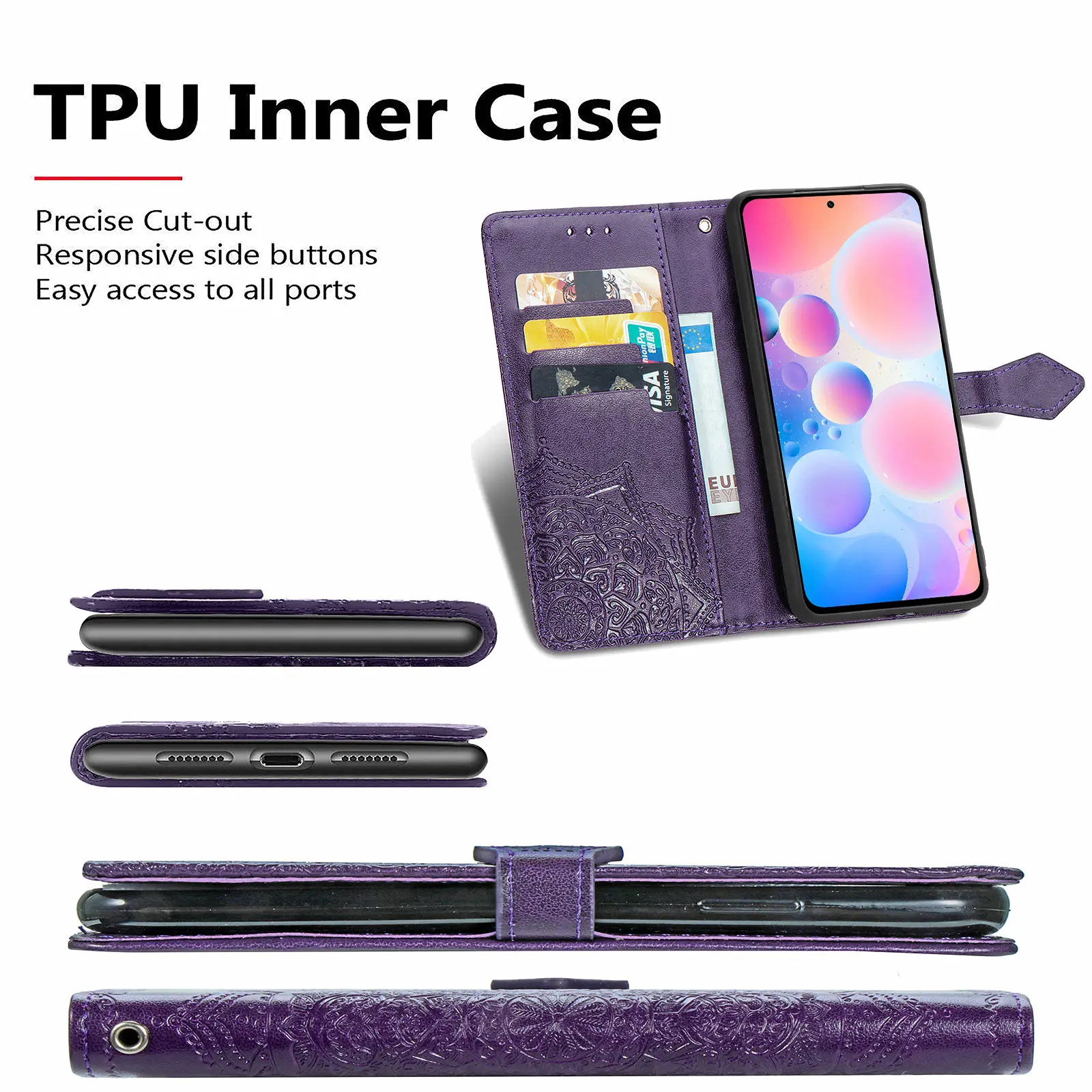 ХарактеристикиFlip Leather Cartoon 3D Embossed Mandala Stand Wallet Leather Cover