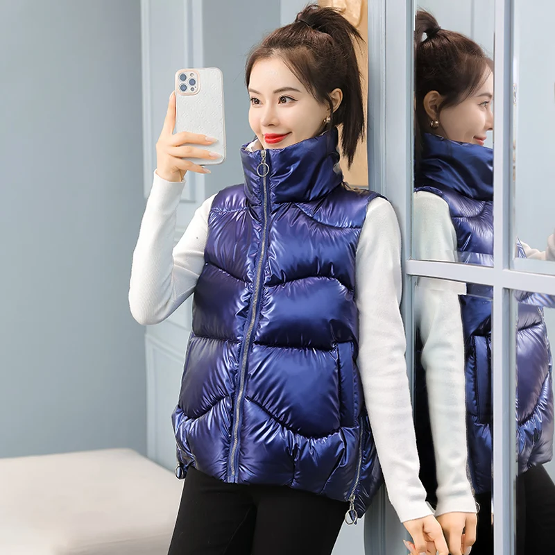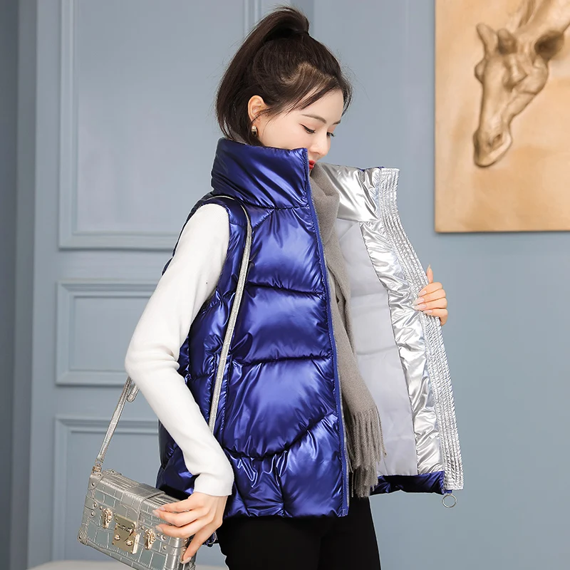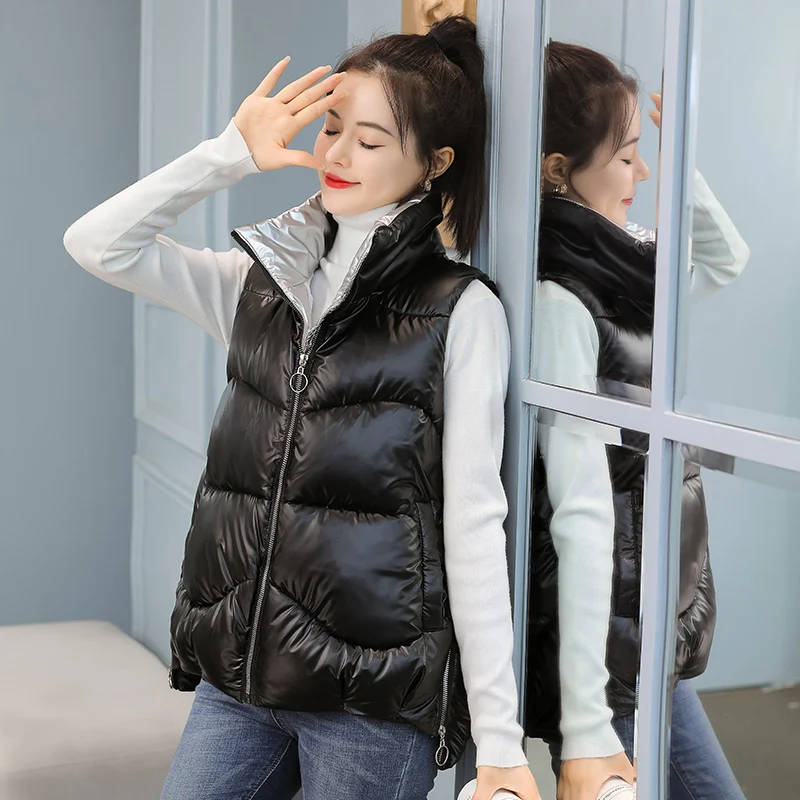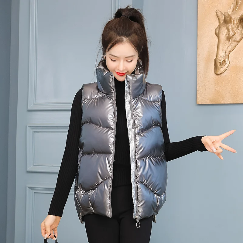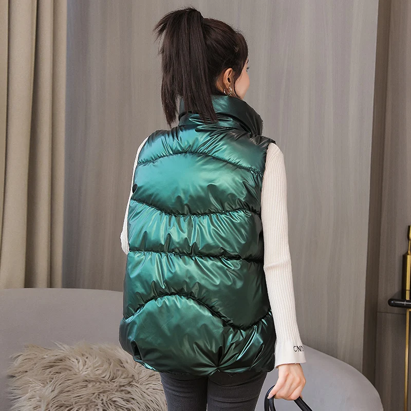 FORERUN женский зимний жилет, блестящая безрукавная куртка, однотонное пальто большого размера, водонепроницаемая теплая жилетка