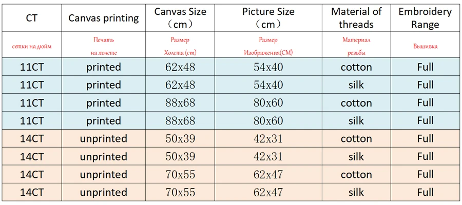 Советы 1:Фактический размер изделия может варьироваться от 1 до 3 см от размера холста. Это нормально.