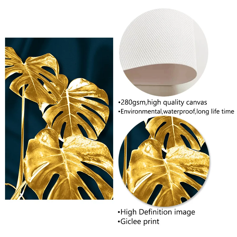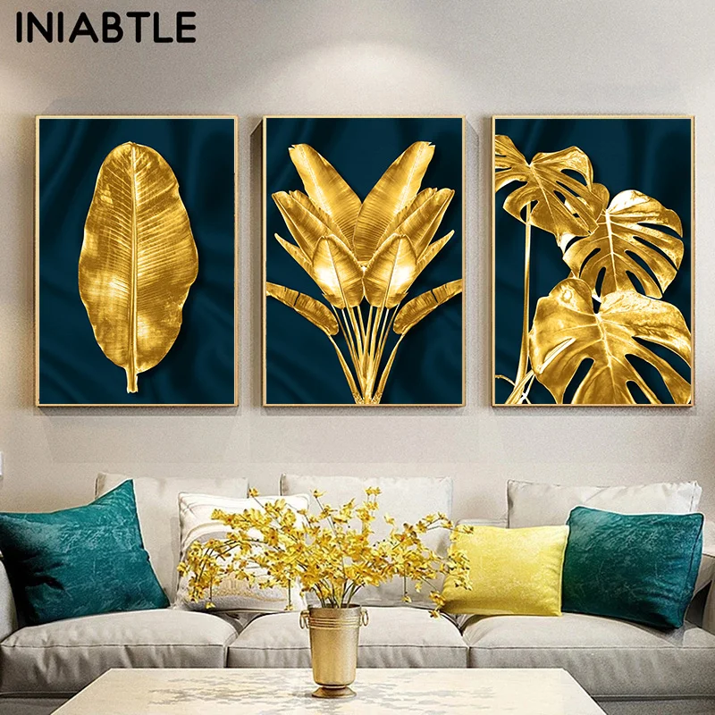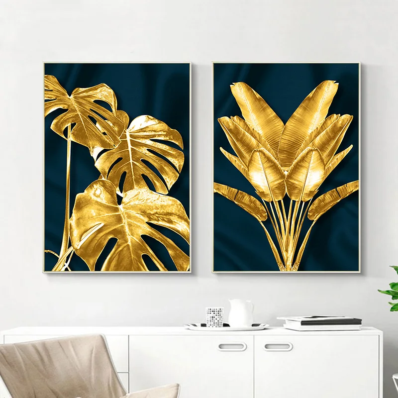 Постеры с изображением золотых листьев, тропических листьев, Абстрактная Картина на холсте, Современная Скандинавская картина, декор для гостиной