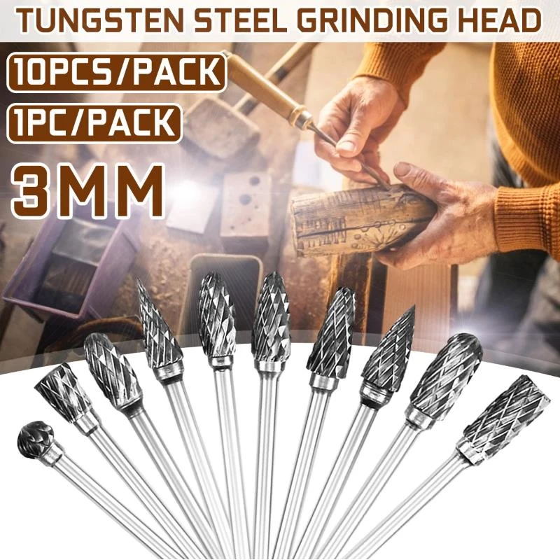 Описание:3 мм Вольфрамовая стальная Шлифовальная головка с двойным зерном, вращающаяся фреза, режущая головка, инструмент для резьбыХарактеристики: