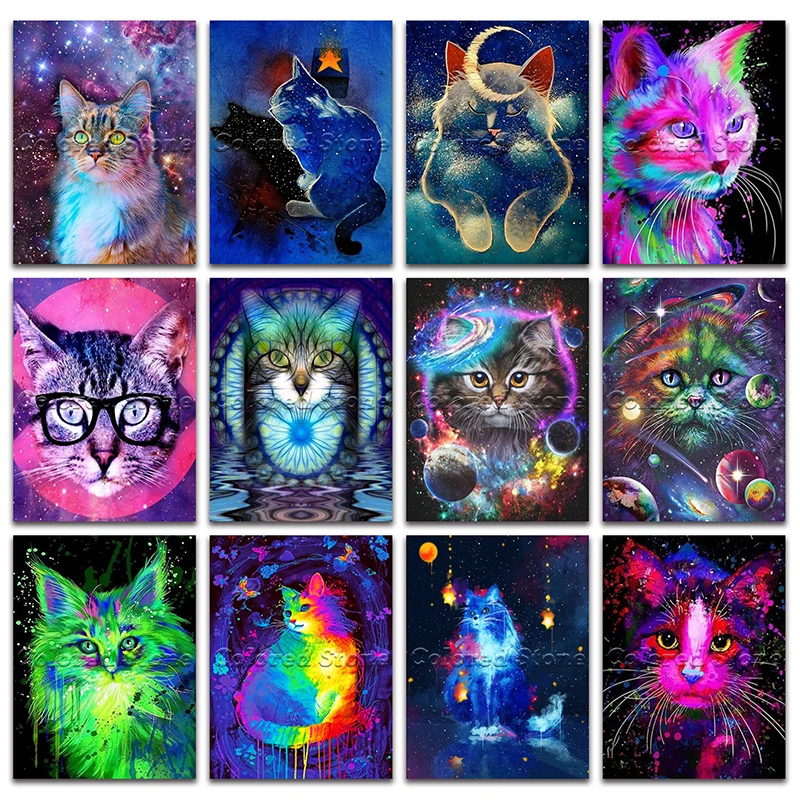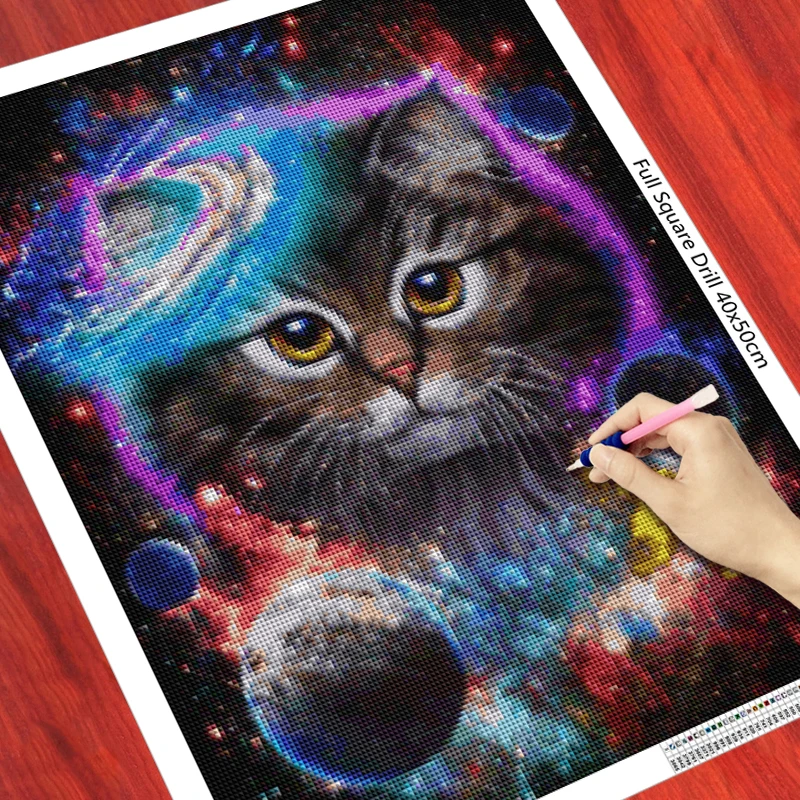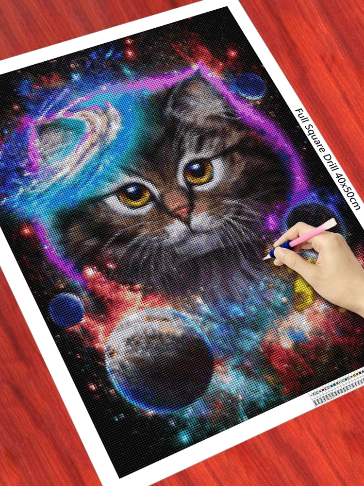 Алмазная живопись с животными, картина 5D с изображением красочной кошки, планеты, котенка, полная выкладка, вышивка крестиком, Круглая Мозаика, 988