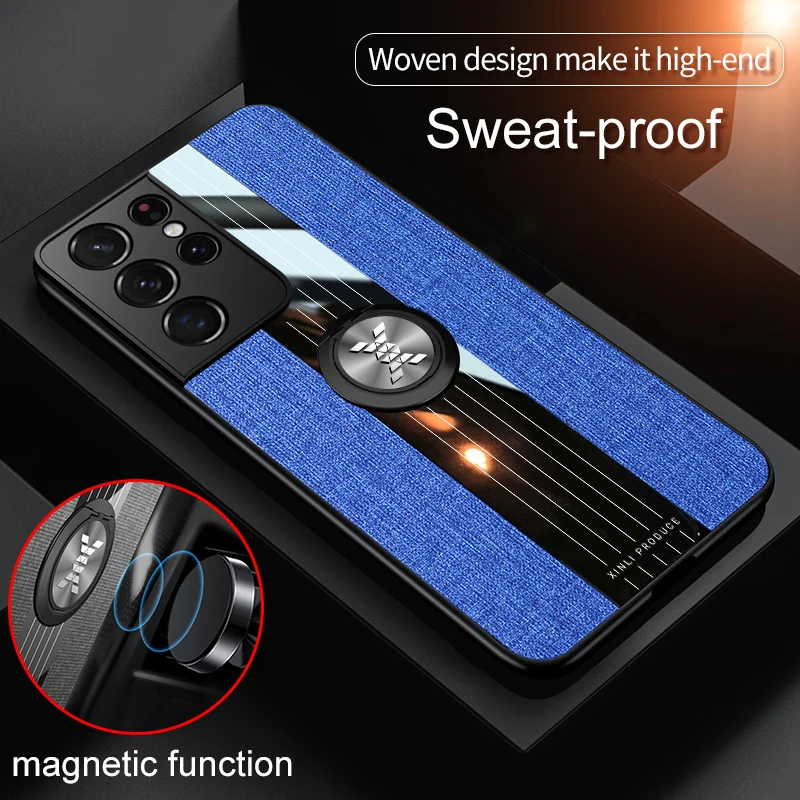 Роскошный защитный чехол-держатель для телефона Samsung Galaxy S21 Plus, ультра противоударный тканевый чехол с рисунком и магнитным кольцом
