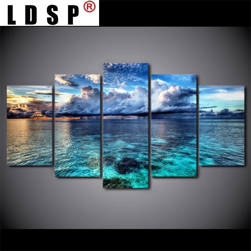 ЛДСП 5 панелей ландшафт с морскими волнами современного искусства стены Печать холст Картина модульная высокой четкости изображения Плакаты для Гостиная домашний декор