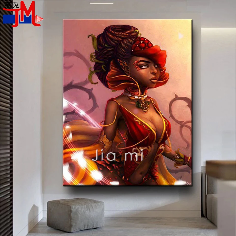 Полноразмерная квадратная круглая мультяшная Африканская женщина 5D алмазная живопись вышивка крестиком Сексуальная фотография вышивка строительный подарок