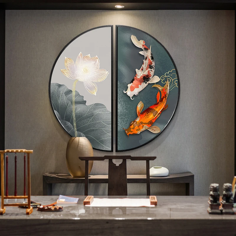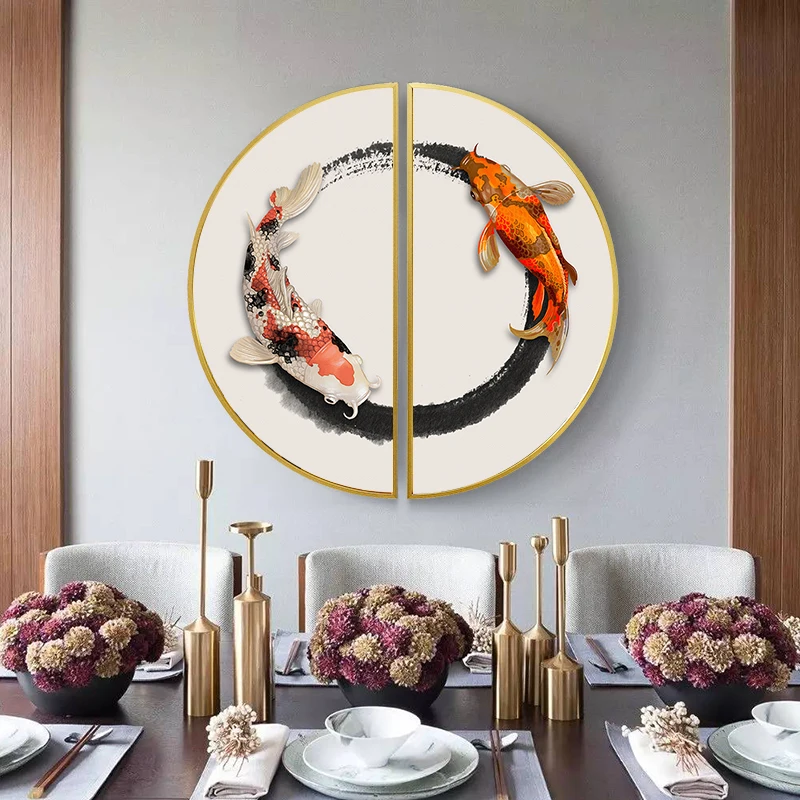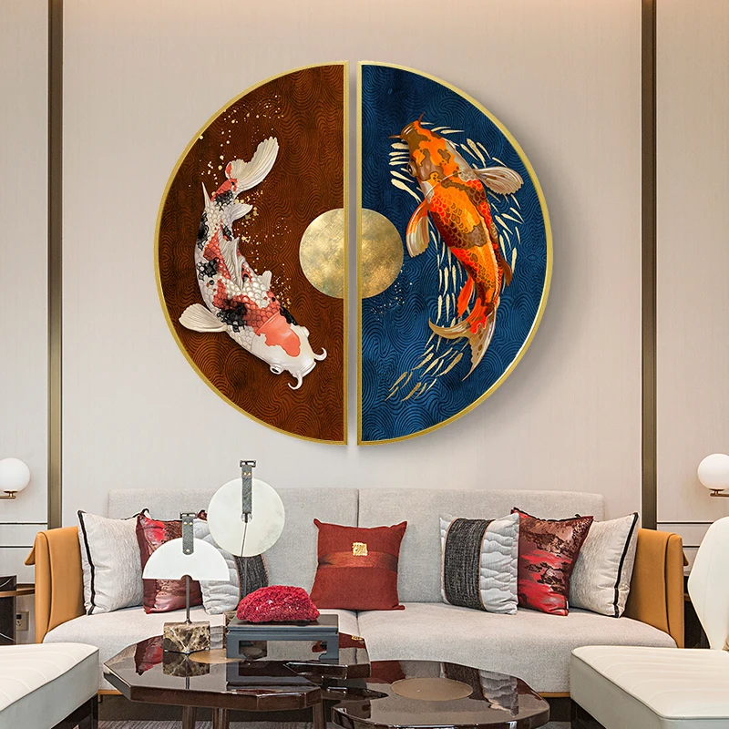 Полукруглая Настенная картина Золотая рыбка кои карп искусство на холсте изысканный постер в китайском стиле Картина декор для гостиной дома офиса