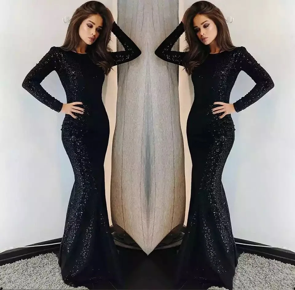 2021 Дешевое черное платье на заказ для выпускного вечера, вечернее платье с длинными рукавами и блестками для конкурса, праздников, выпускного вечера, вечернее платье на заказ