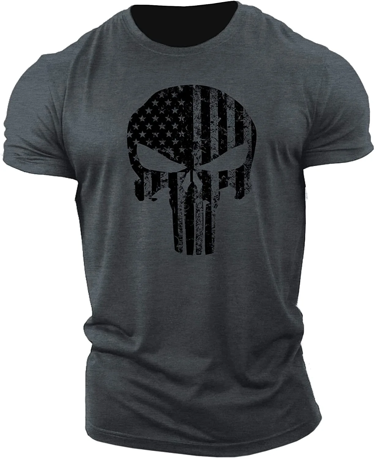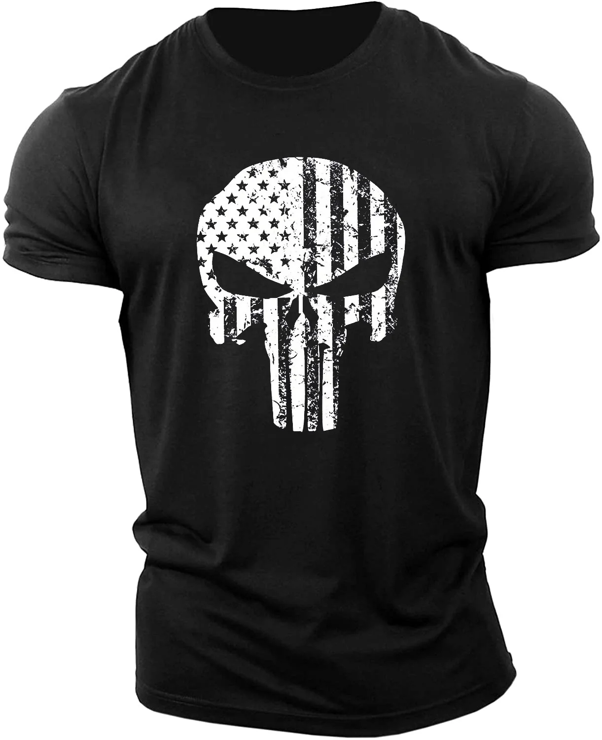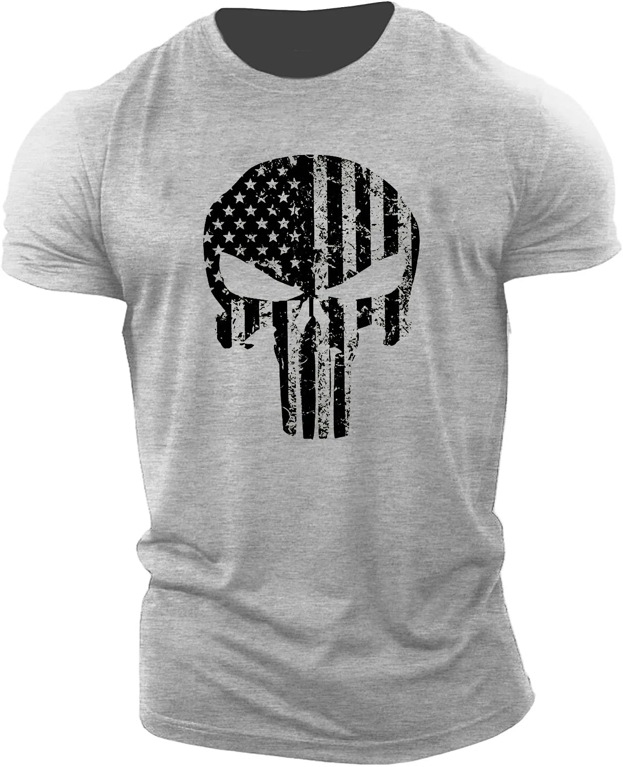 Мужская спортивная футболка футболки с изображением черепа с графическим принтом, дышащие быстросохнущие повседневные топы с коротким рукавом для тренировок в тренажерном зале